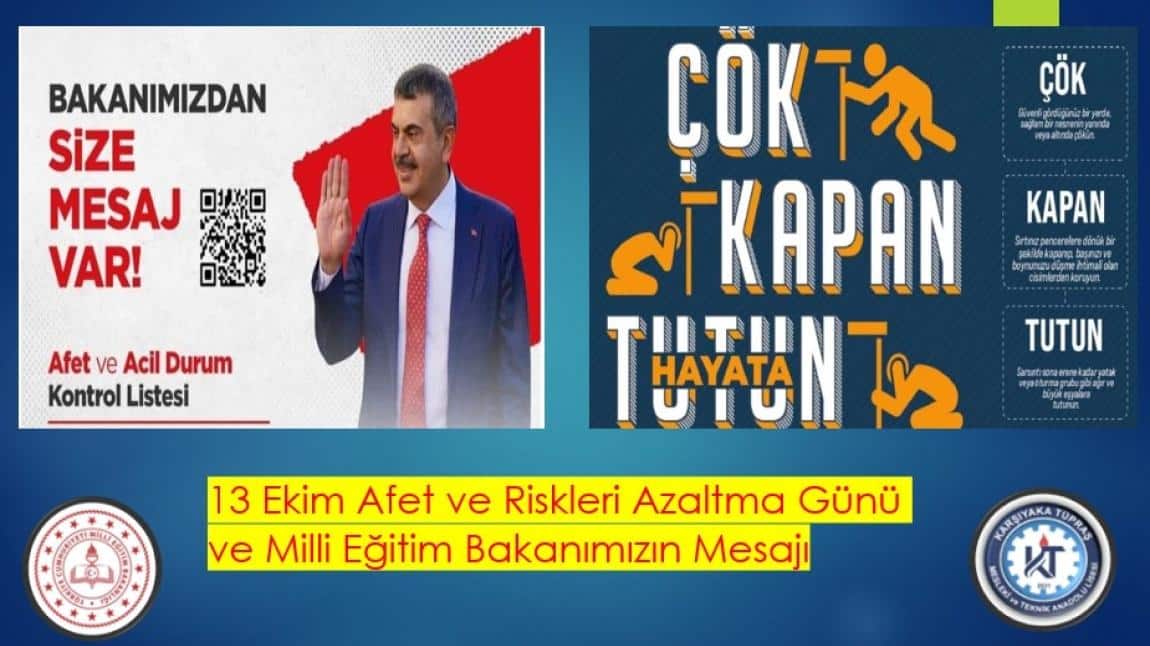 13 Ekim Afet ve Riskleri Azaltma Günü ve Milli Eğitim Bakanımızın...